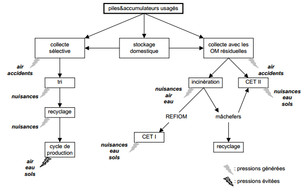 Voici le cycle de pressions environnementales des piles et accumulateur lors du recyclage :